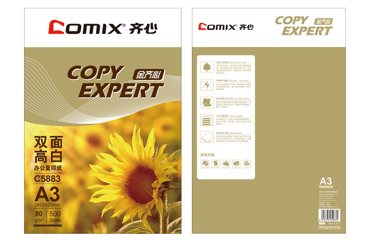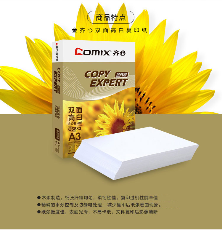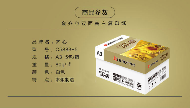 商品名称:齐心(COMIX)C5883-5 高白80克A3复印纸 金(5包/箱)