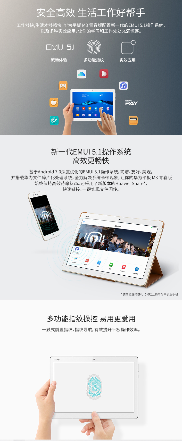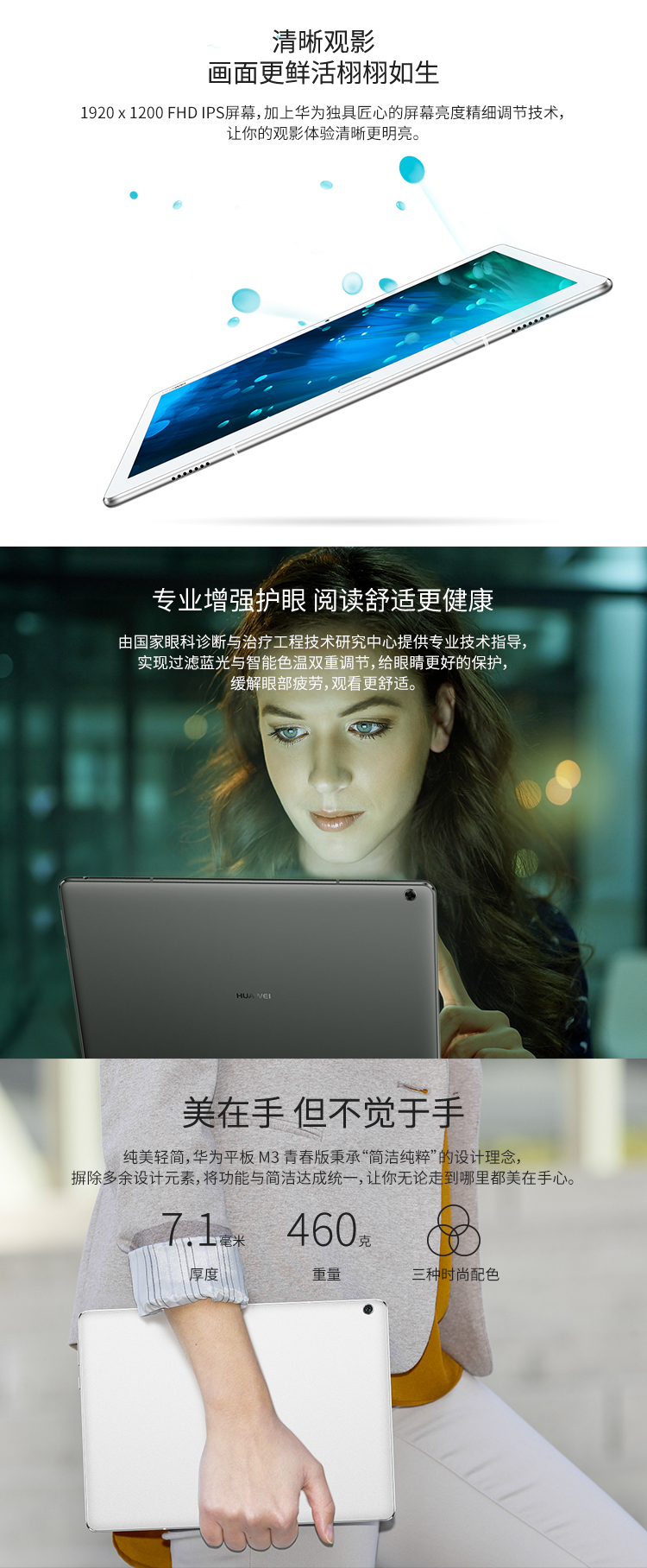 商品名称:华为(HUAWEI)M3 青春版 10英寸 平板电脑(不包邮) 苍穹灰