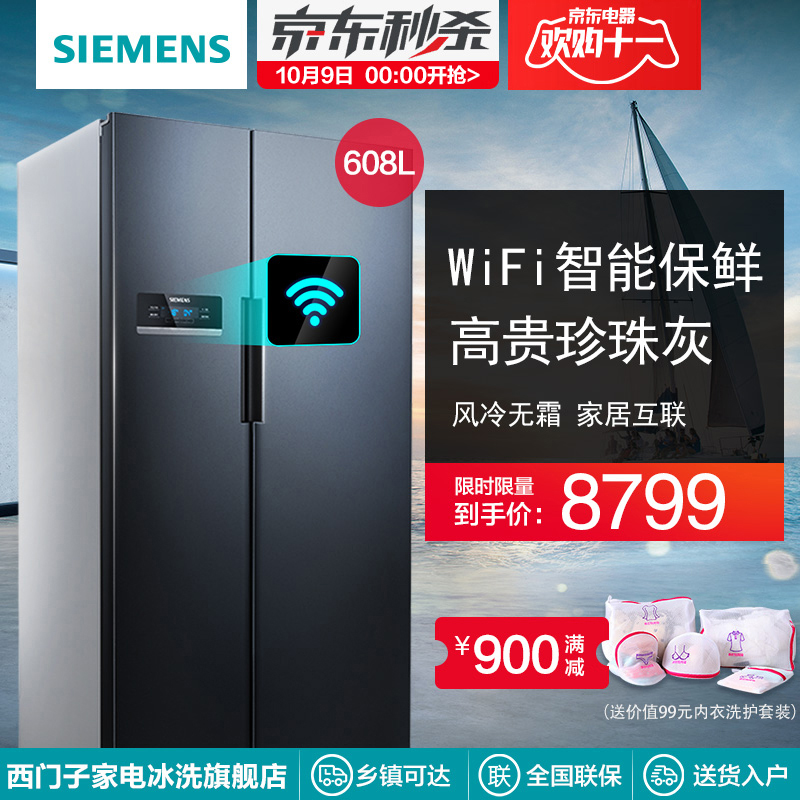 商品名称:西门子(SIEMENS)家居互联WIFI双门对开门冰箱变频风冷无霜608